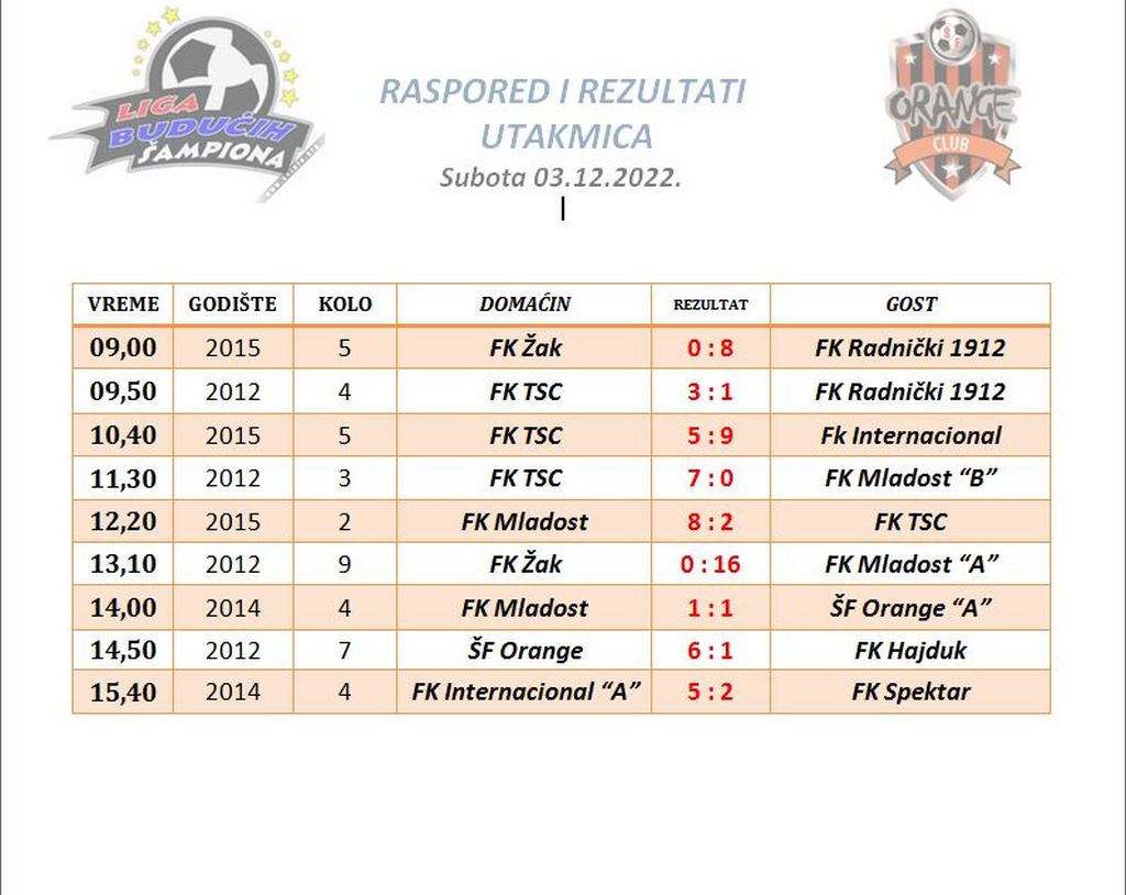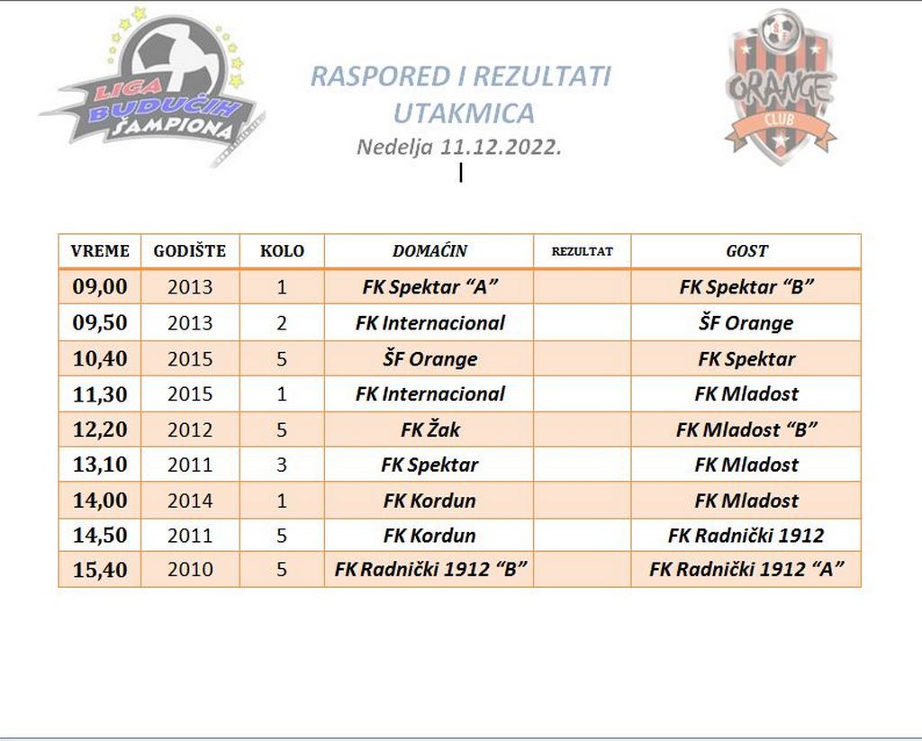 Протеклог викенда одиграни су сви најављени мечеви СОС лиге будућих шампиона. Првог дана највише утакмица одиграно је у групама 2012., 2014. и 2015. годишта, док су дан касније наступиле екипе из 2011. и 2013.годишта. Најзанимљивије је било у мечевима генерације 2011. годишта. ТЦС је славио у два меча над апатинском Младошћу (1:2) и Кордуном (3:0). Спектар и ОФК Оџаци су славили над вршњацима из Томиславаца, док су ОФК Оџаци и Раднички 1912 у дербију групе одиграли меч без победника (1:1). Овог викенда најављена је 21 утакмица. Суботњи програм започињу почетници, а највише мечева (10) током викенда одиграће сомборски Интернационал. Прва утакмица по распореду стартују у 9 часова. У прилогу можете погледати комплетне резултате четвртог викенда и најаву свих утакмица предстојећег (петог) викенда.